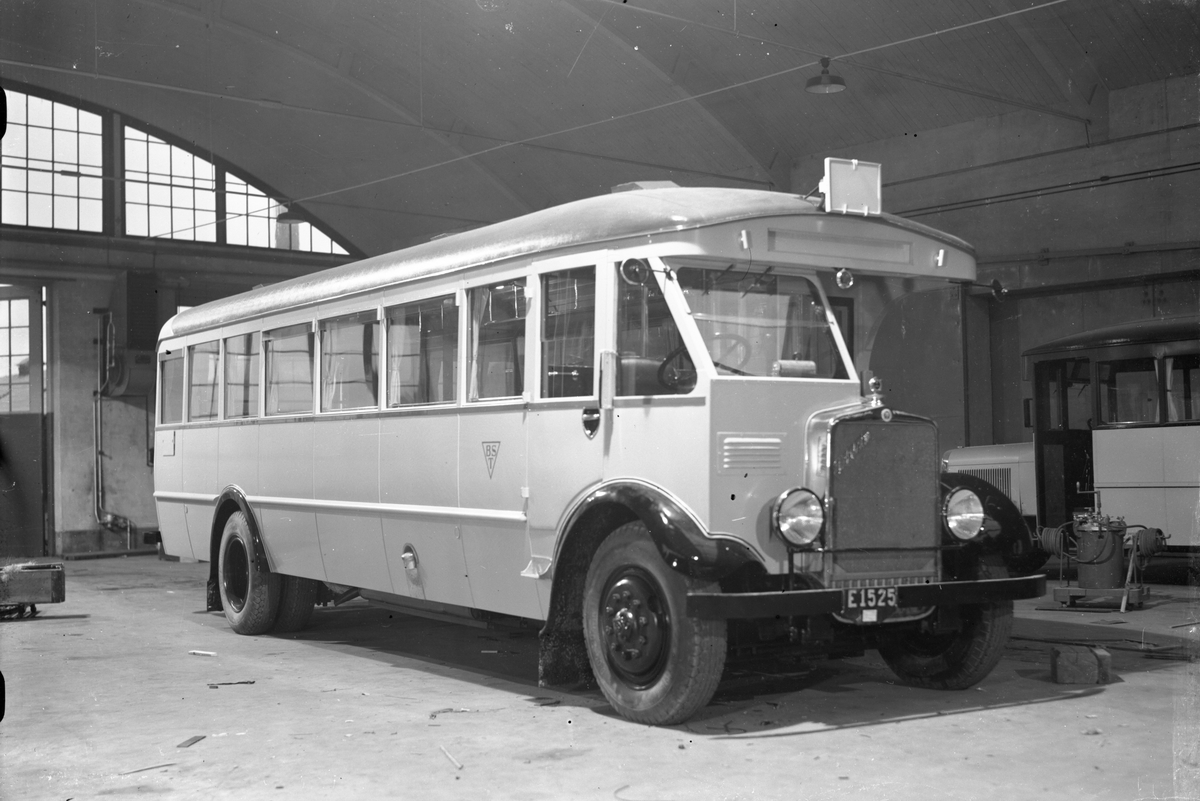 Tidaholmsbuss för Brännkyrka - Södertörn. Halvhyttare. Tillverkad av Aktiebolaget Svenska Järnvägsverkstäderna, ASJ. Leveransfoto.