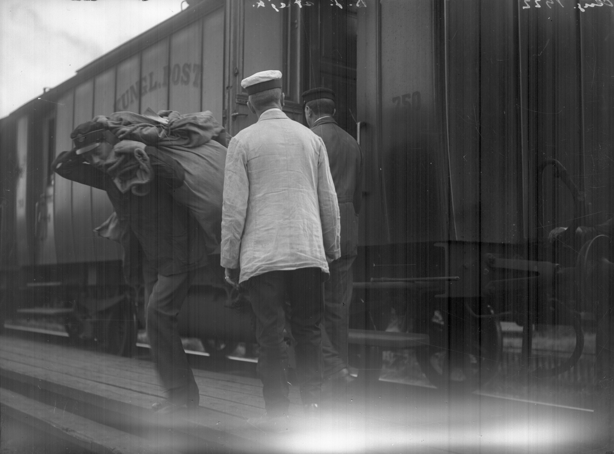 Statens Järnvägar, SJ D1 750. Lossning av post.