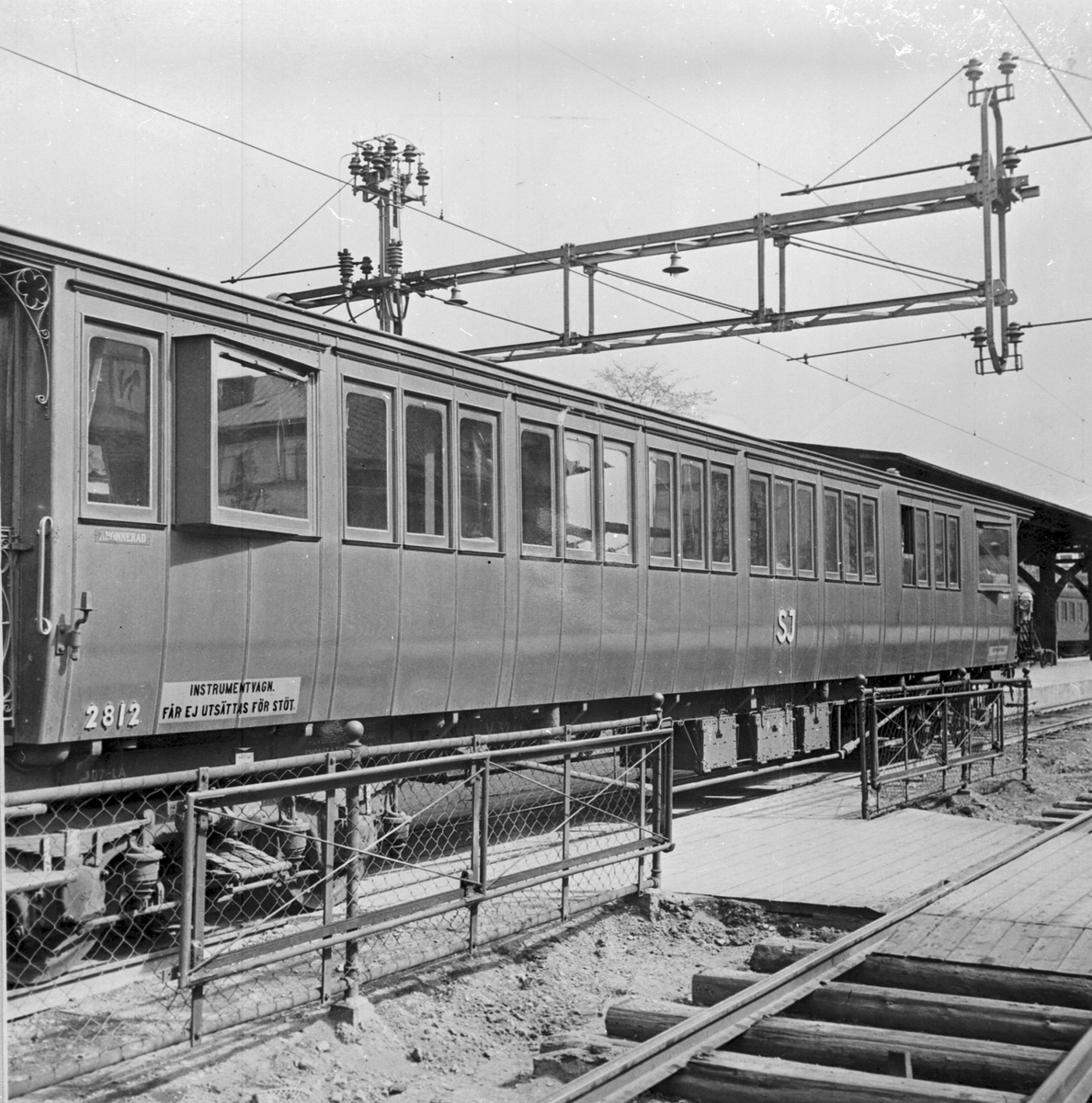Mätvagn SJ Bo7 2812. Halladevagnen. Fransmannen Emile Hallade, fader till Hallademetoden för mätning, utformning och fastställning av kurvor för järnvägsspår. Vagnen ursprungligen byggd som personvagn tidigt 1900-tal. och ombyggd till mätvagn 1930.