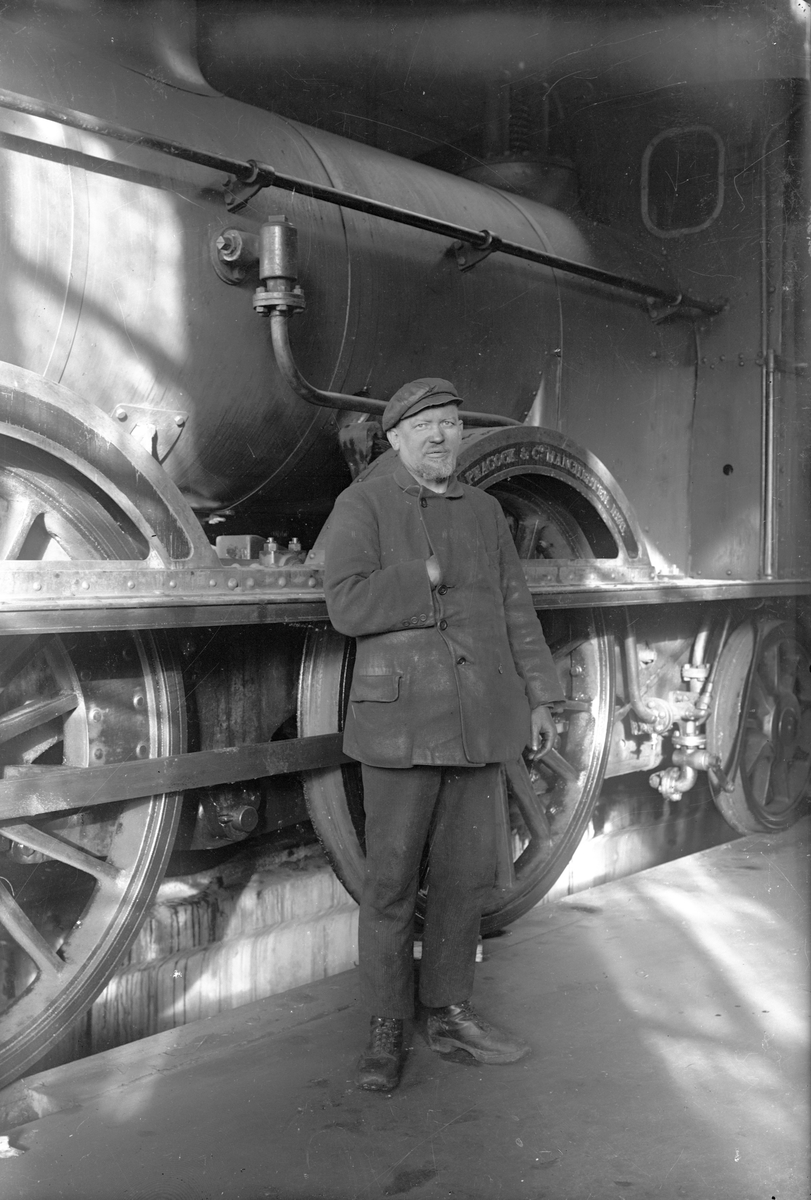 Vagn- och stallkarl framför, Bergslagens Järnvägar, BJ B-lok, Åmål.