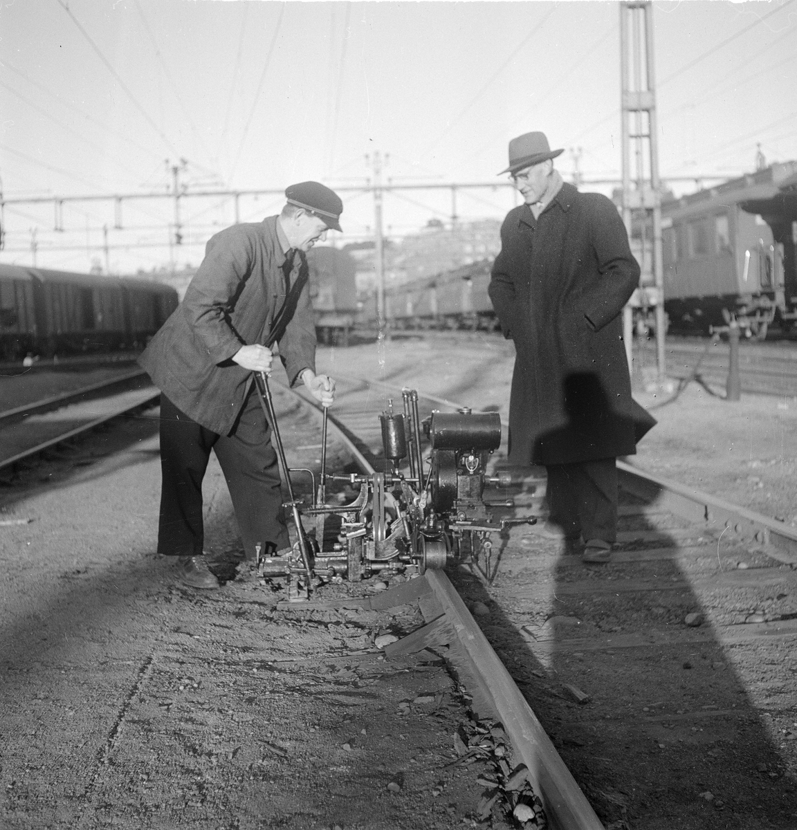 Amerikansk borrmaskin för förbindningar i rälsskarvar.