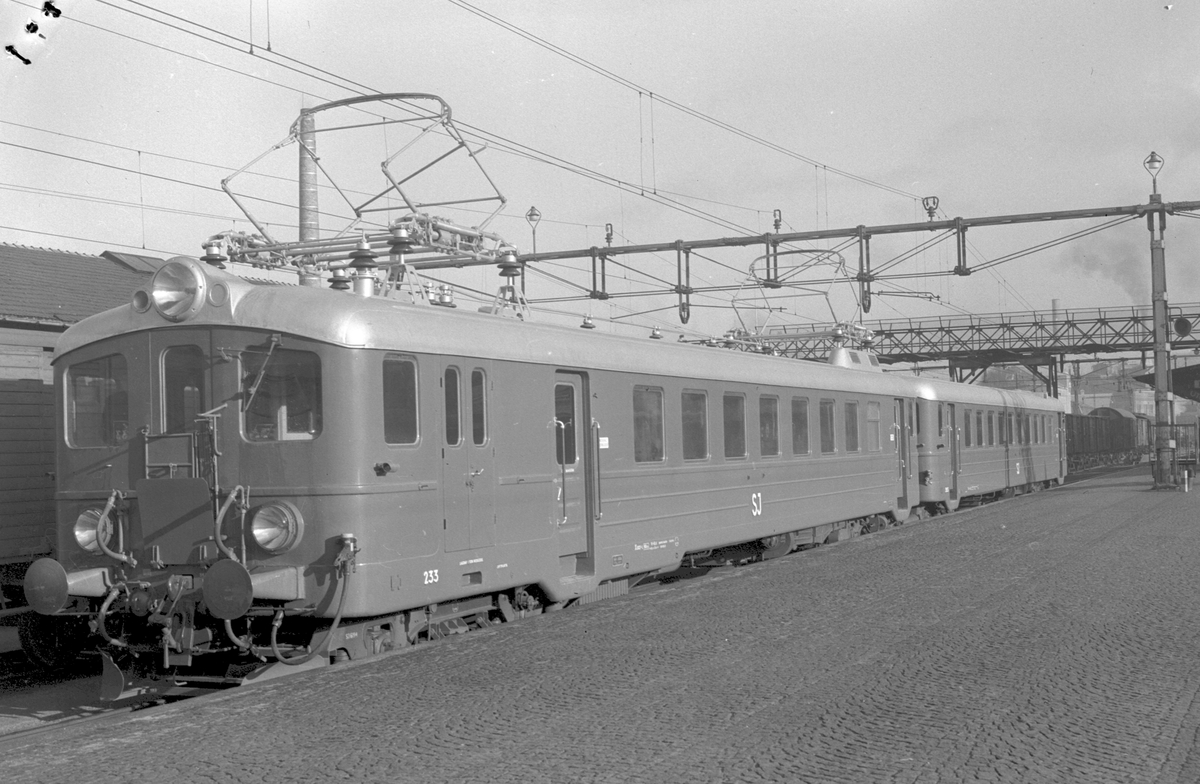 Statens Järnvägar, SJ X0a7 233, SJ B0x7. Motorvagn med manövervagn vid Borås Central.