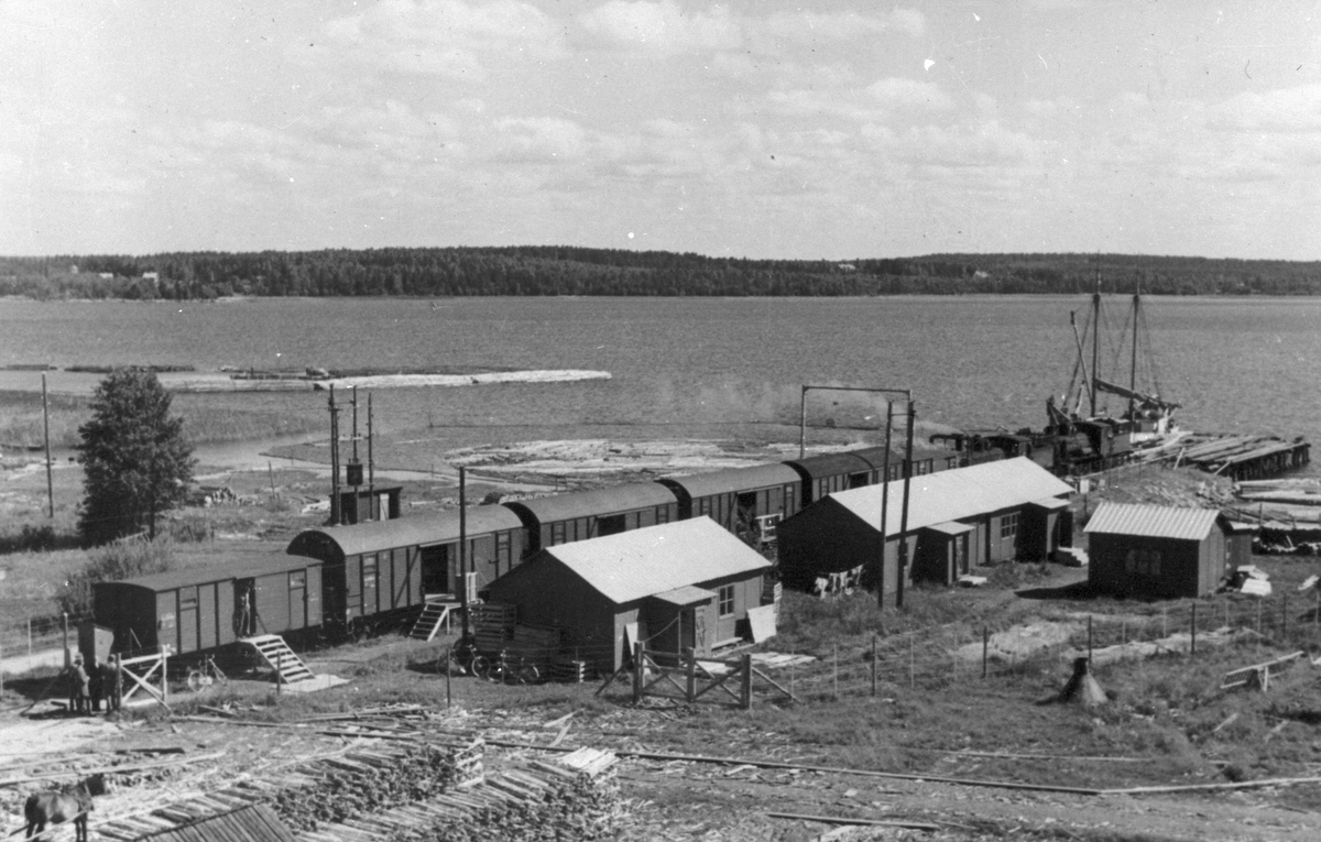 Arméns mobila tvätteri. Installerat i järnvägsvagnar.