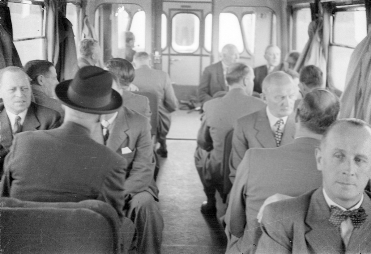 Titel: Motorvagn SJ YC04. Bild från insidan med resande.