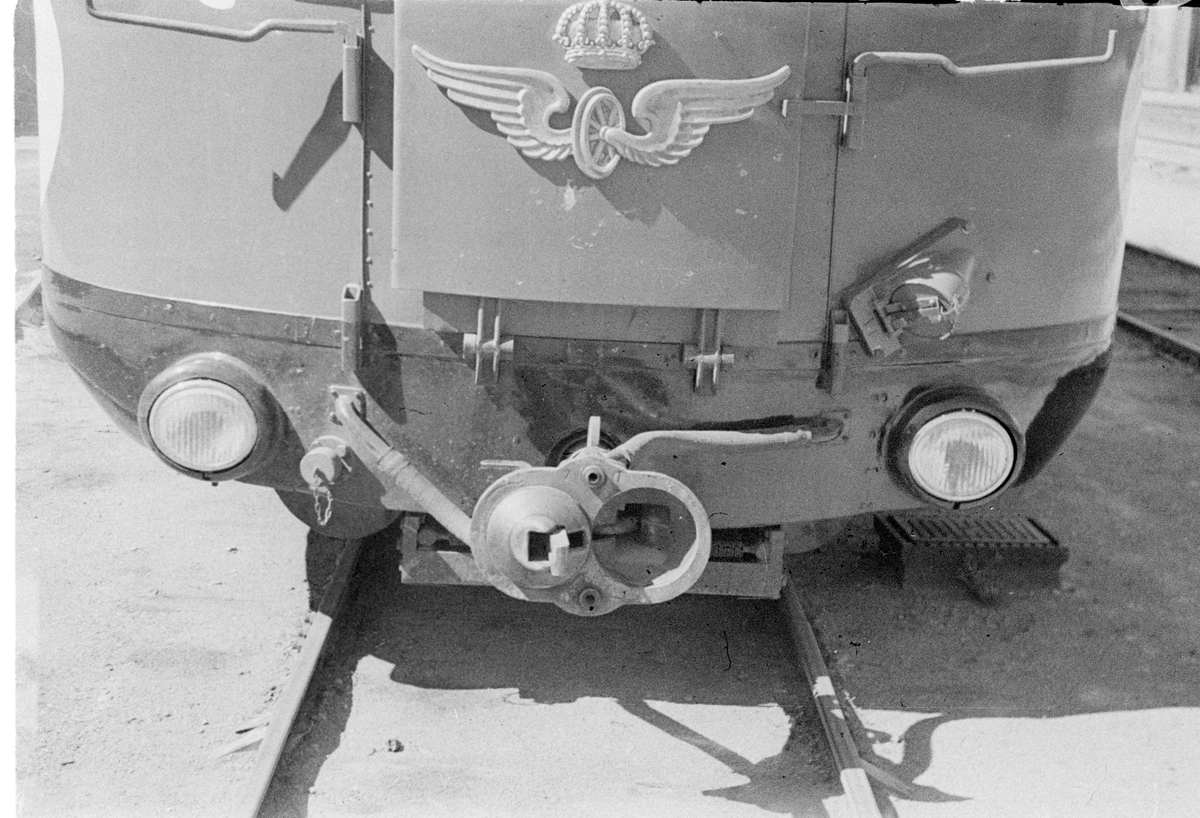 Titel: Motorvagn SJ YC04. Centralkoppel och SJs emblem.