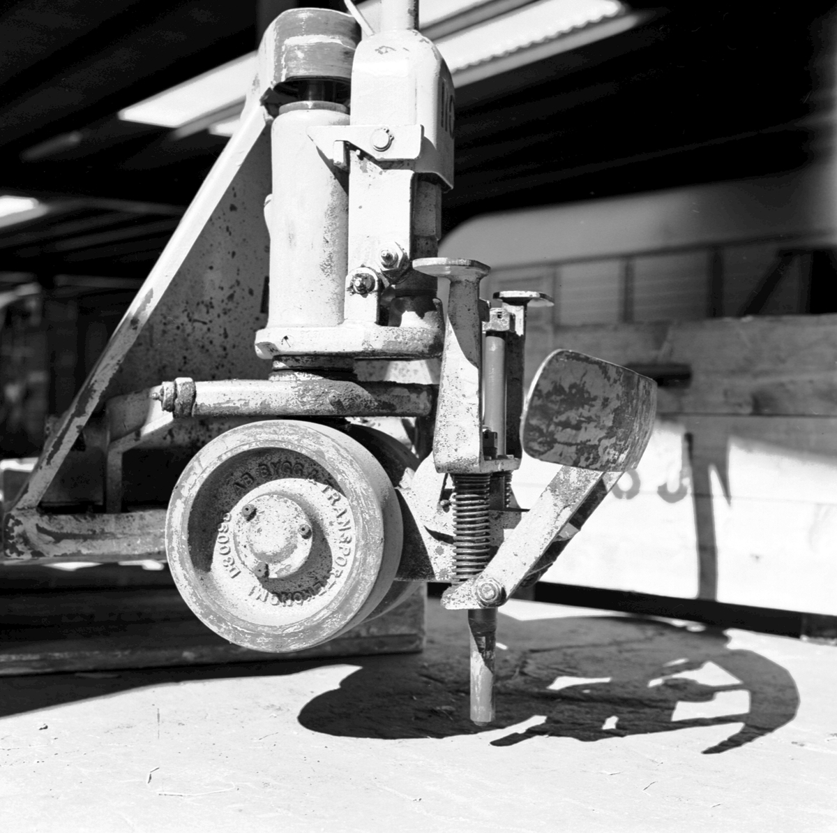 Omlastningsmagasin, detalj av pallyftare, kedjetransportör