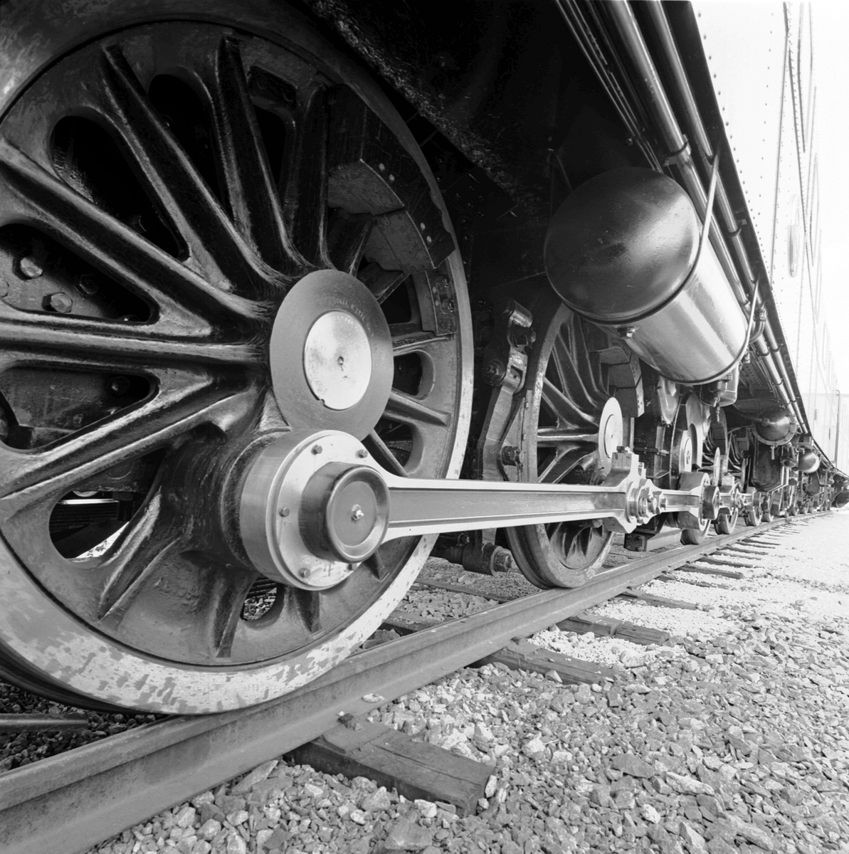 Statens Järnvägar, SJ Dm3, detaljfoto på hjul och koppelstänger