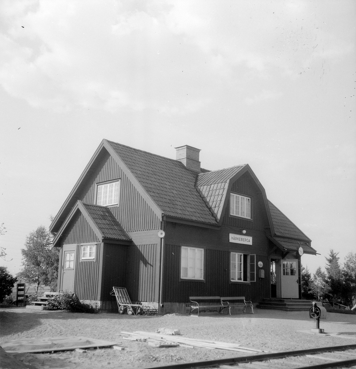Härkeberga hållplats anlagd 1912. Tvåvånings stationshus i trä.