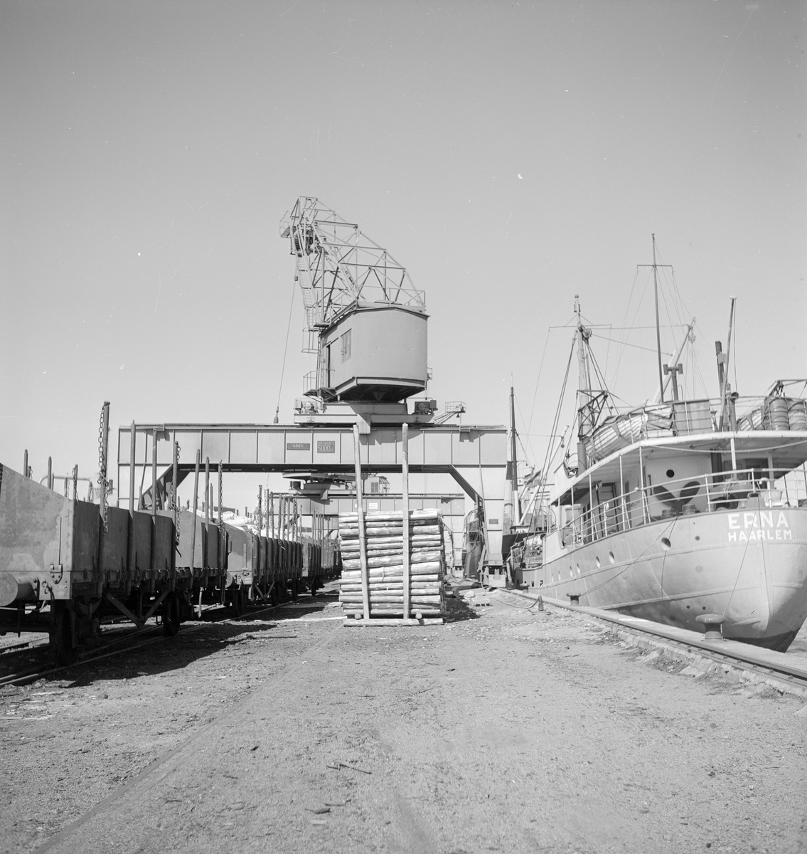Lastfartyg Erna Harlem. Lastning i Västerås hamn.