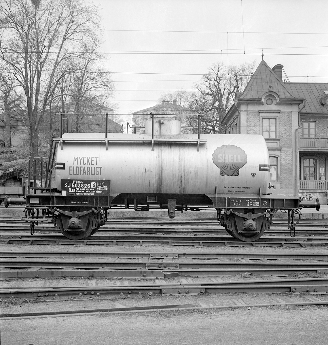 Oljevagn SJ Q12 503826 med texten Shell Mycket brandfarligt.