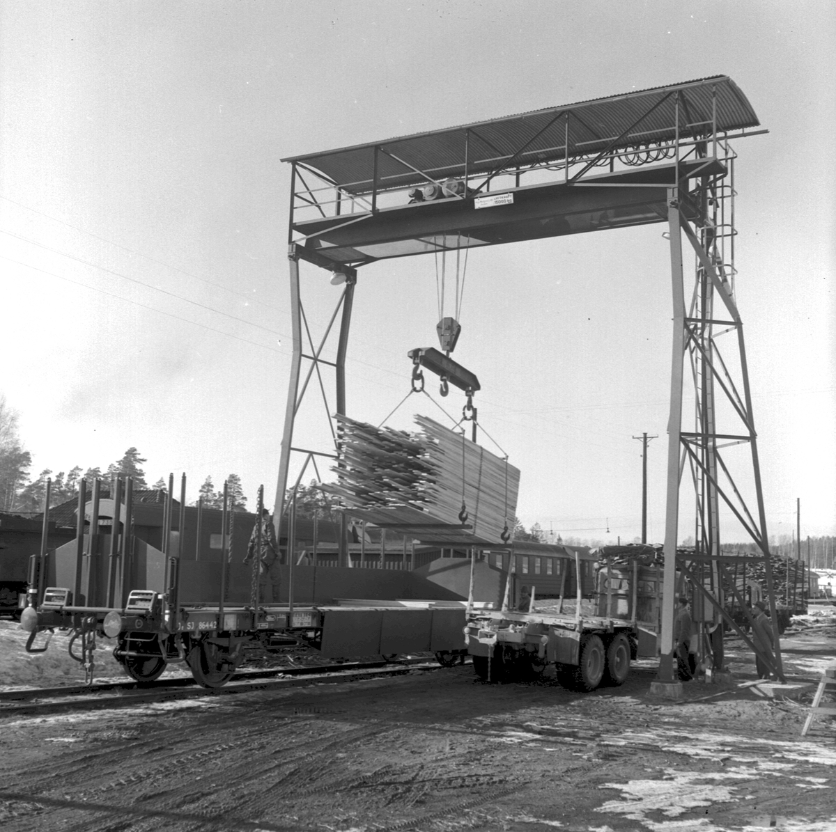 Statens Järnvägar, SJ 86442. Lastning med bockkran