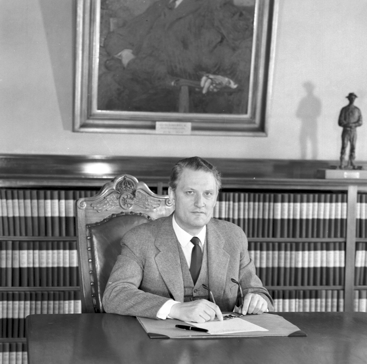 Generaldirektör Erik Upmark i plenisalen Statens Järnvägars, SJ, huvudkontor Centralstationen