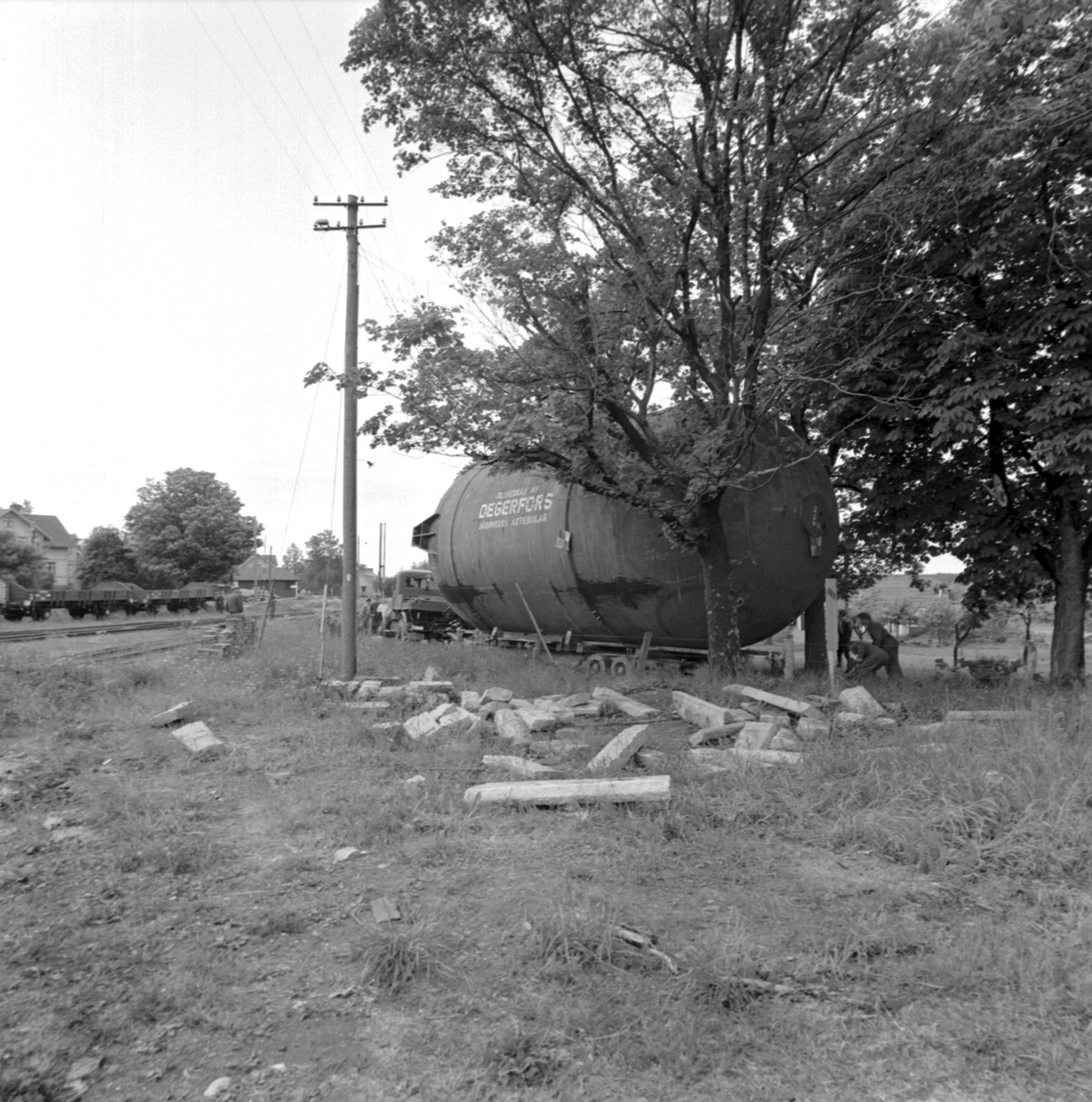 Statens Järnvägar, SJ. Sulfitkokare transporteras med vagnbjörn