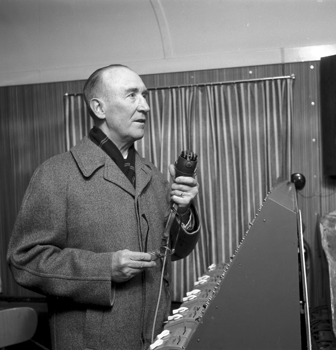 A.G. Nydell eller G. Rydergren, vid kontrollerna till en modelljärnväg