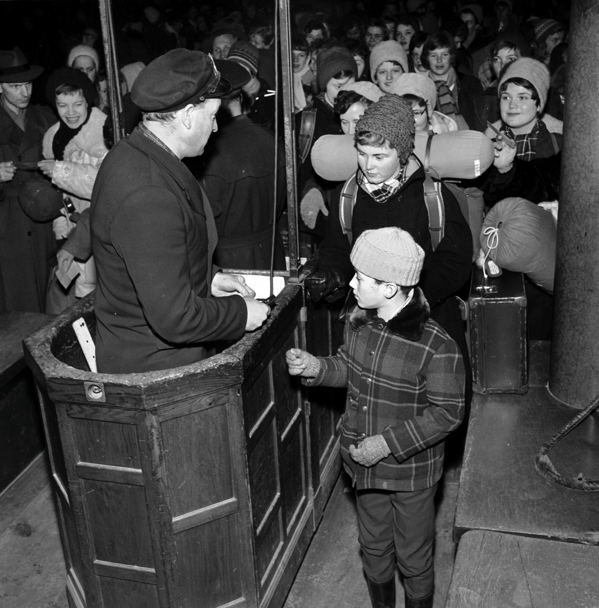 Fjällresa, skolungdom, biljettspärr i underjordiska passagen till norrgående spår.