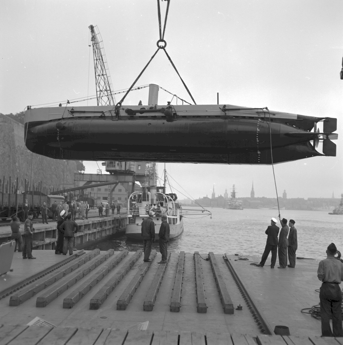 U-båten Spiggen transporteras på järnväg