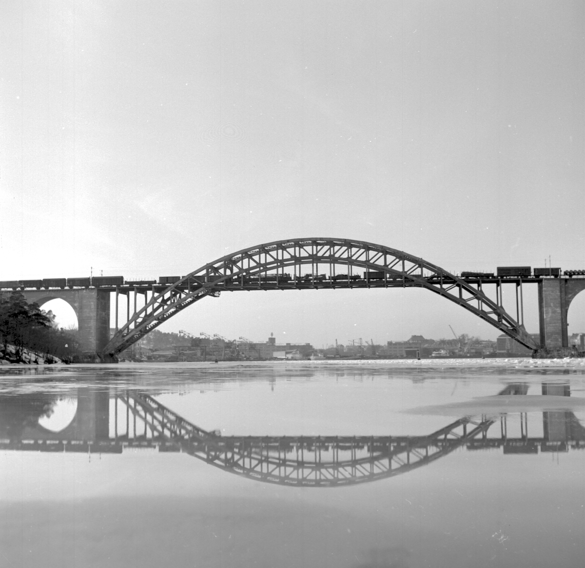 Titel: Statens Järnvägar, SJ godståg på bron.
