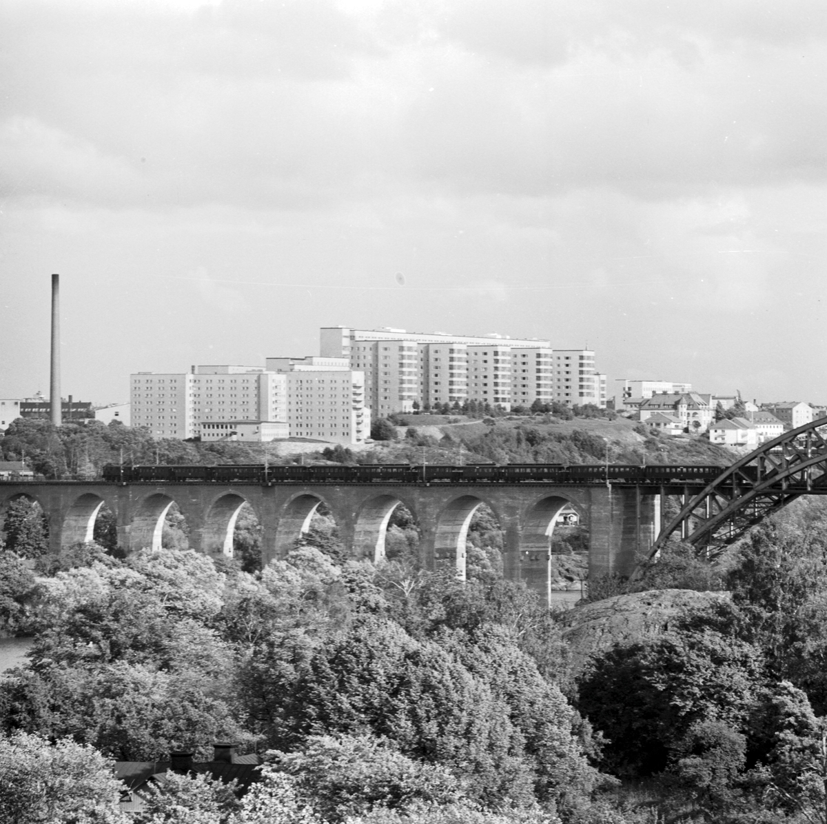 Årstabron med Södersjukhuset i bakgrunden. Statens Järnvägar SJ D