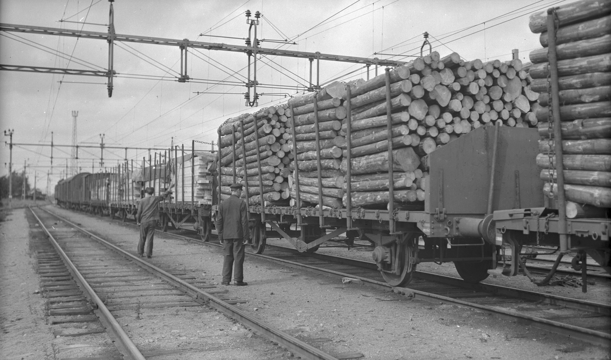Statens Järnvägar, SJ O. Stolpvagnar. SJ säkerhetstjänst. Vagnskötare inspekterar vagnar inför resan.