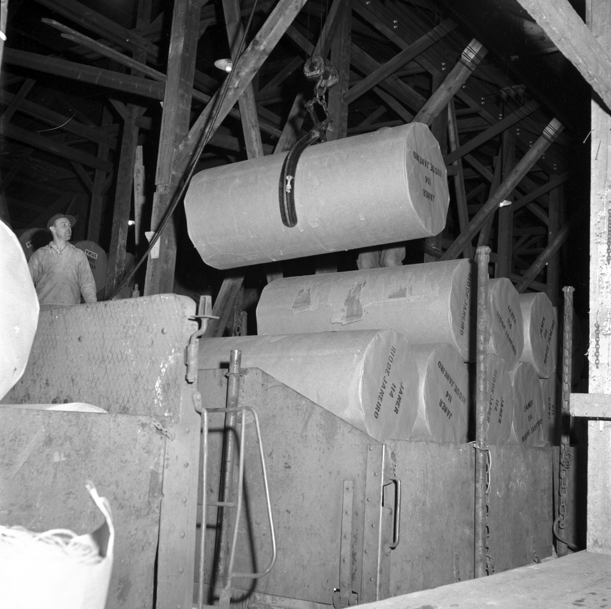 Lastning av pappersbalar på Kvarnsvedens pappersbruk