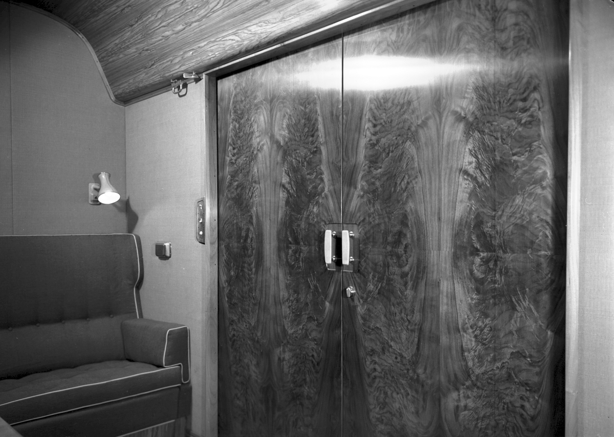 Statens Järnvägar, SJ So3 2904. Interiörer från salongen i HM Konung Gustav VI Adolfs salongsvagn. Ursprungligt littera Ao3, 1956 ändrat till So3.