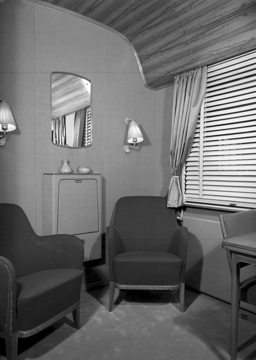 Statens Järnvägar, SJ So3 2904. Interiörer från salongen i HM Konung Gustav VI Adolfs salongsvagn. Ursprungligt littera Ao3, 1956 ändrat till So3.