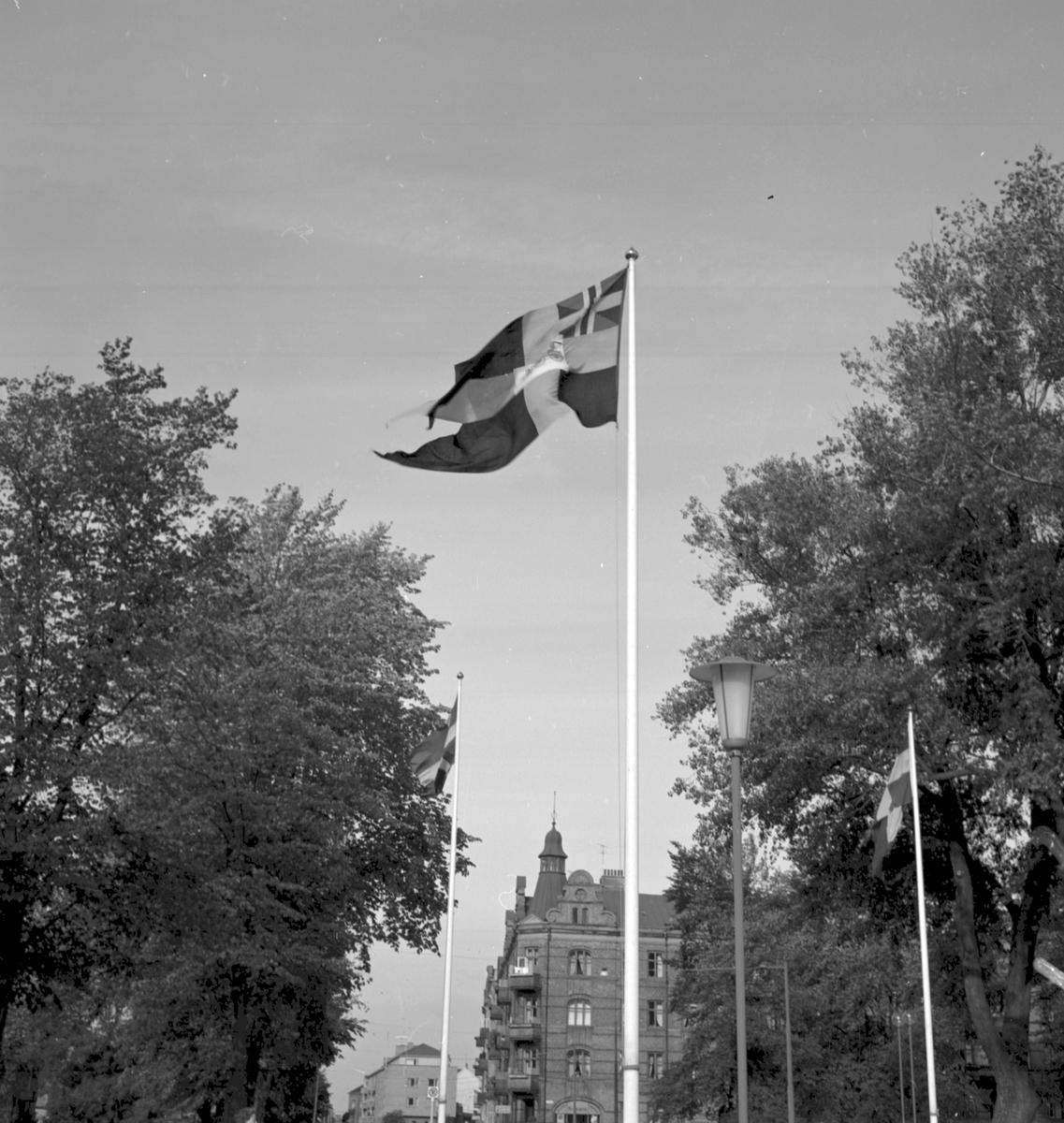 100-årsfirande av järnvägen i Eslöv. Unionsflagga