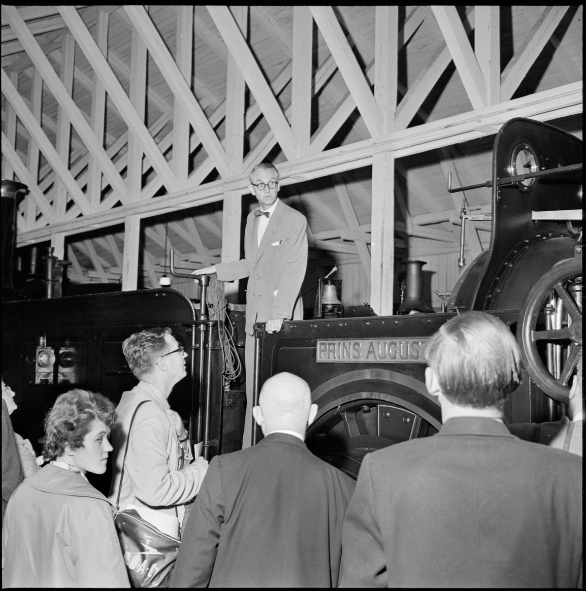 Besökare vid Järnvägsmuseumet i Tomteboda, med Södra Stambanan, SSB lok 3 "Prins August".