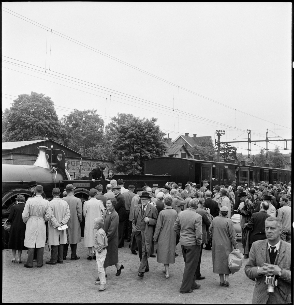 Titel: Statens Järnvägar, SJ B 3 "Prins August" på väg från Stockholm C till Sundbyberg under International Congress of Museums 1959.