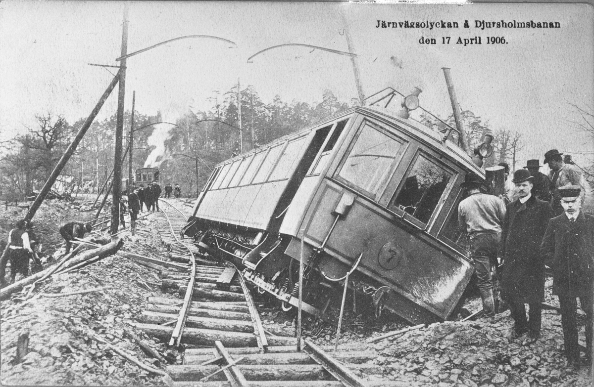 17 april 1906, strax efter det att nya ”mötesspåret” Experimentalfältet - Ålkistan blivit klart, inträffade ett större ras vid Frescati. Minuterna innan hade ett ensamt lok passerat platsen utan att personalen märkt något. Då ett Djursholmståg närmade sig, fick föraren se hur banken sjönk framför honom, och tåget, som bestod av motorvagn 7 och en släpvagn, gled mjukt ner i gropen och spårade ur i lutande ställning. Ingen människa skadades.