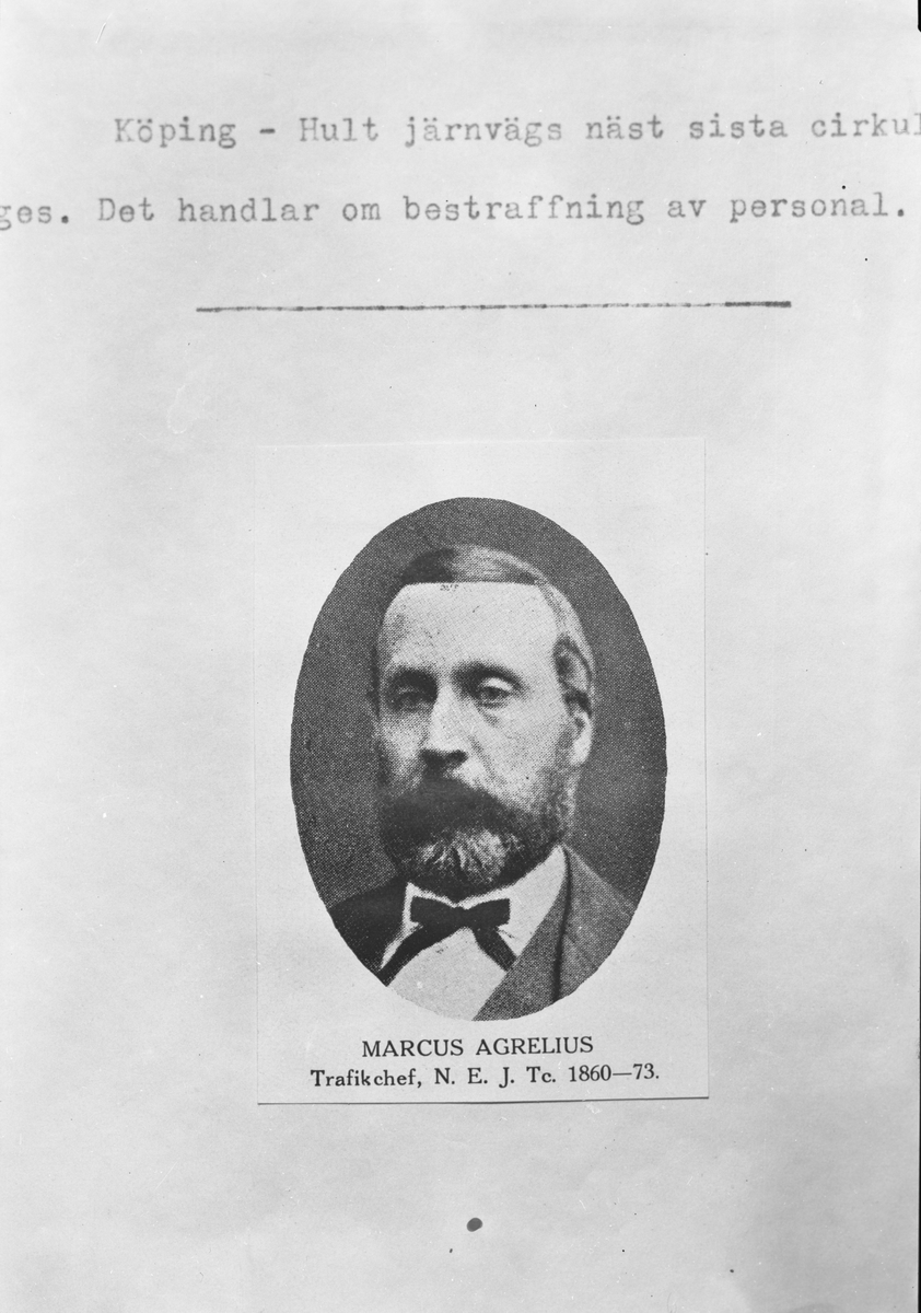 Marcus Agrelius, trafikchef vid NEJ , Nora - Ervalla Järnväg ,1860 - 73