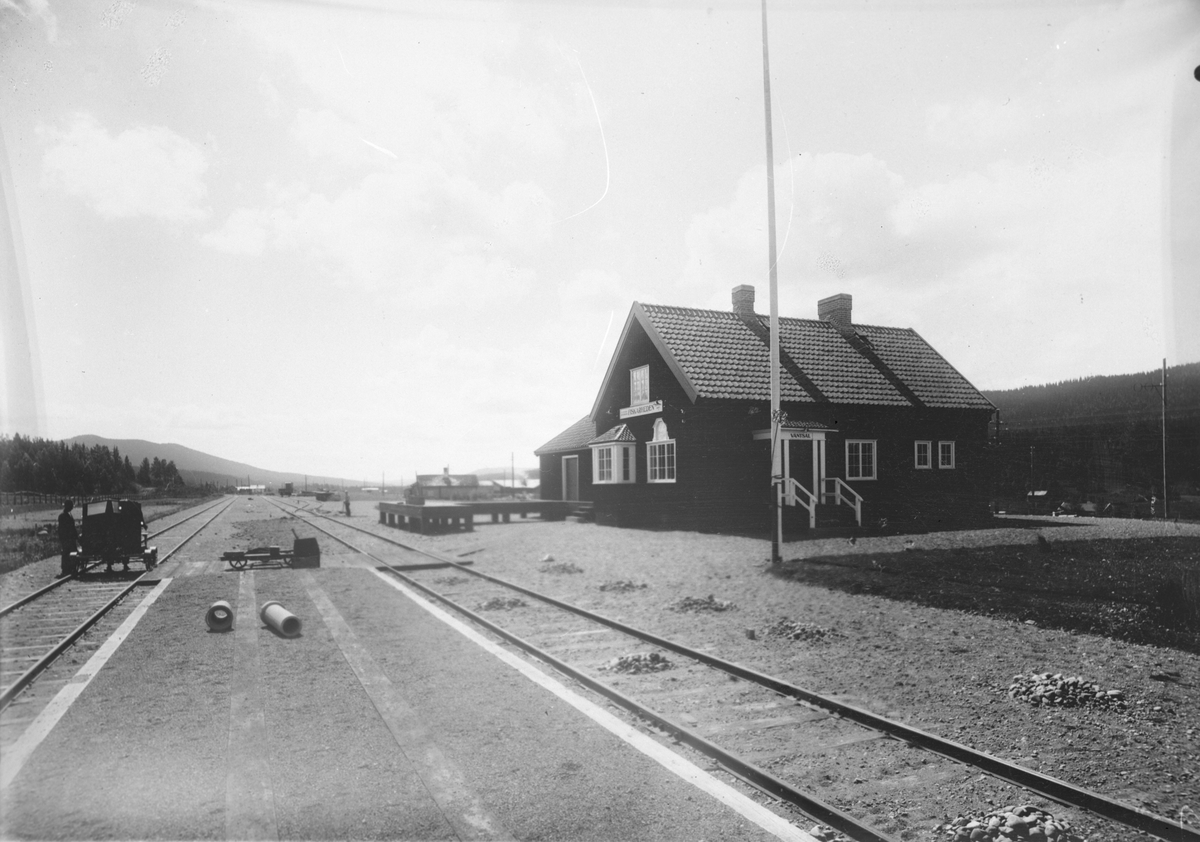 Hållplats anlagd 1928. Envånings stationshus i trä sammanbyggt med godsmagasinet