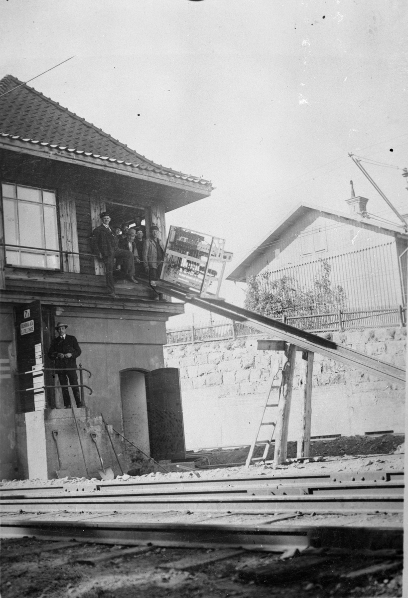Gamla ställverket. Ingenjör Bergkvist (Bbr) på trappan