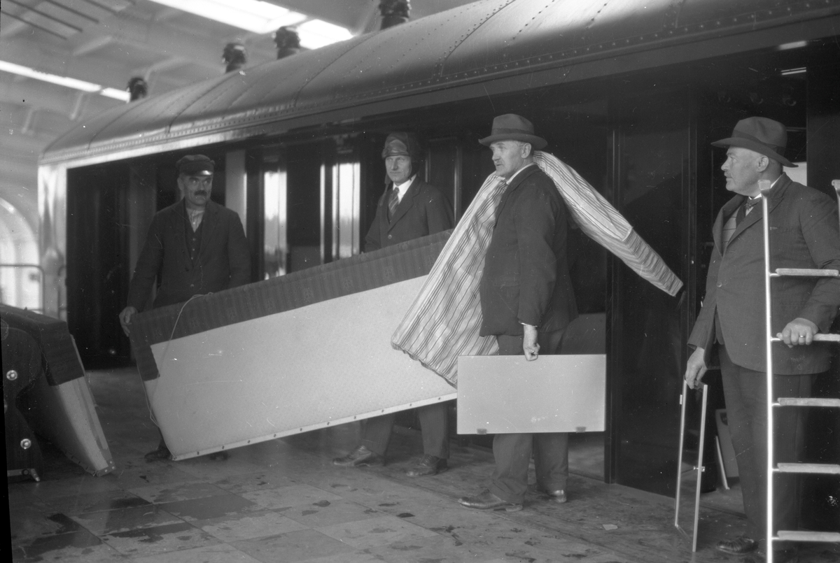 Demontering av inredning i vagn för visning