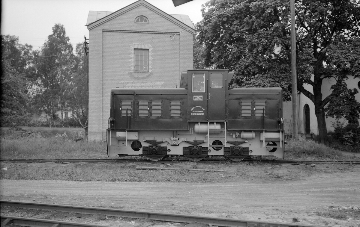 Diesellok använt som växellok för den interna växlingen vid Kopparfors AB sulfatfabrik i Norrsundet.Loket var tillverkat av: Christoph Schöttler GMBH. Maschinenfabrik. Diepholz Der Bremen.