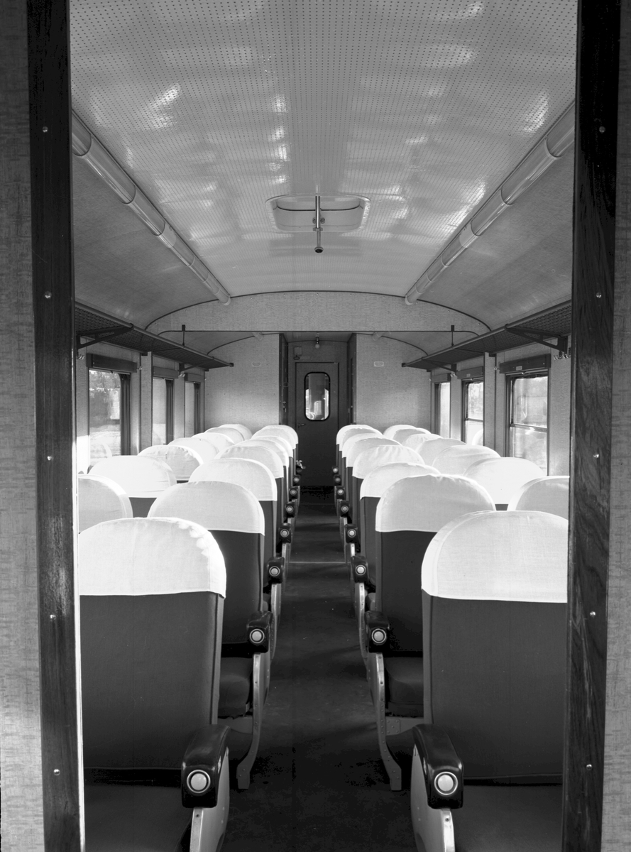 Statens Järnvägar, SJ YCo8 rälsbuss med flygplansfåtöljer.