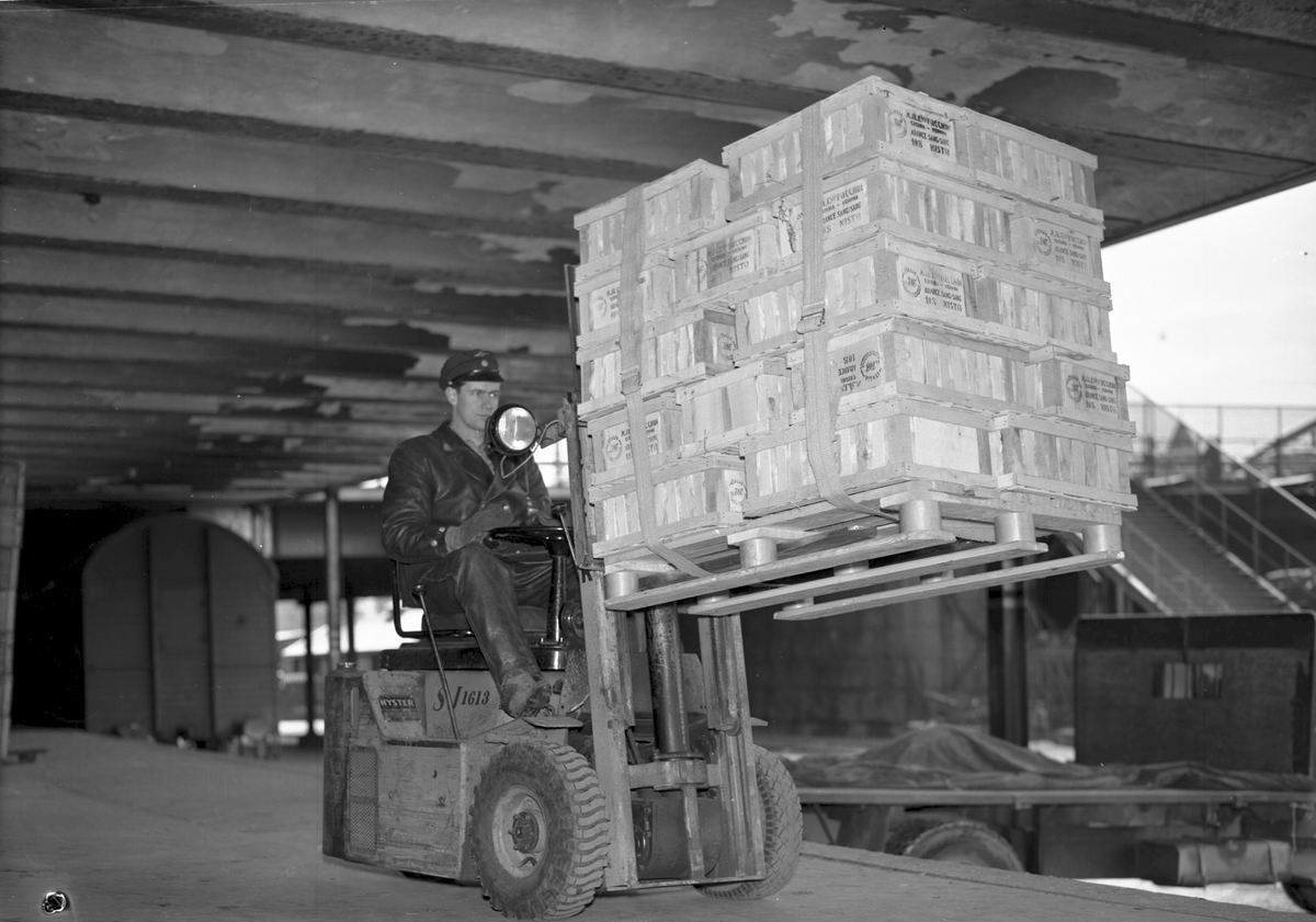 Titel: Gaffeltruck av märket Hyster SJ 1G13 med pallastgods.