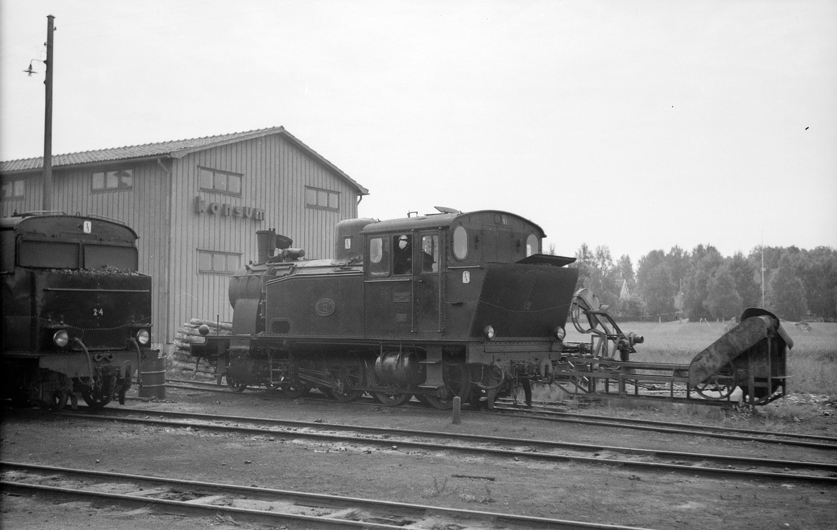 Dannemora - Hargs Järnvägs, DHJ, lok 12. Stockholm - Rimbo Järnväg, SRJ, lok 24.