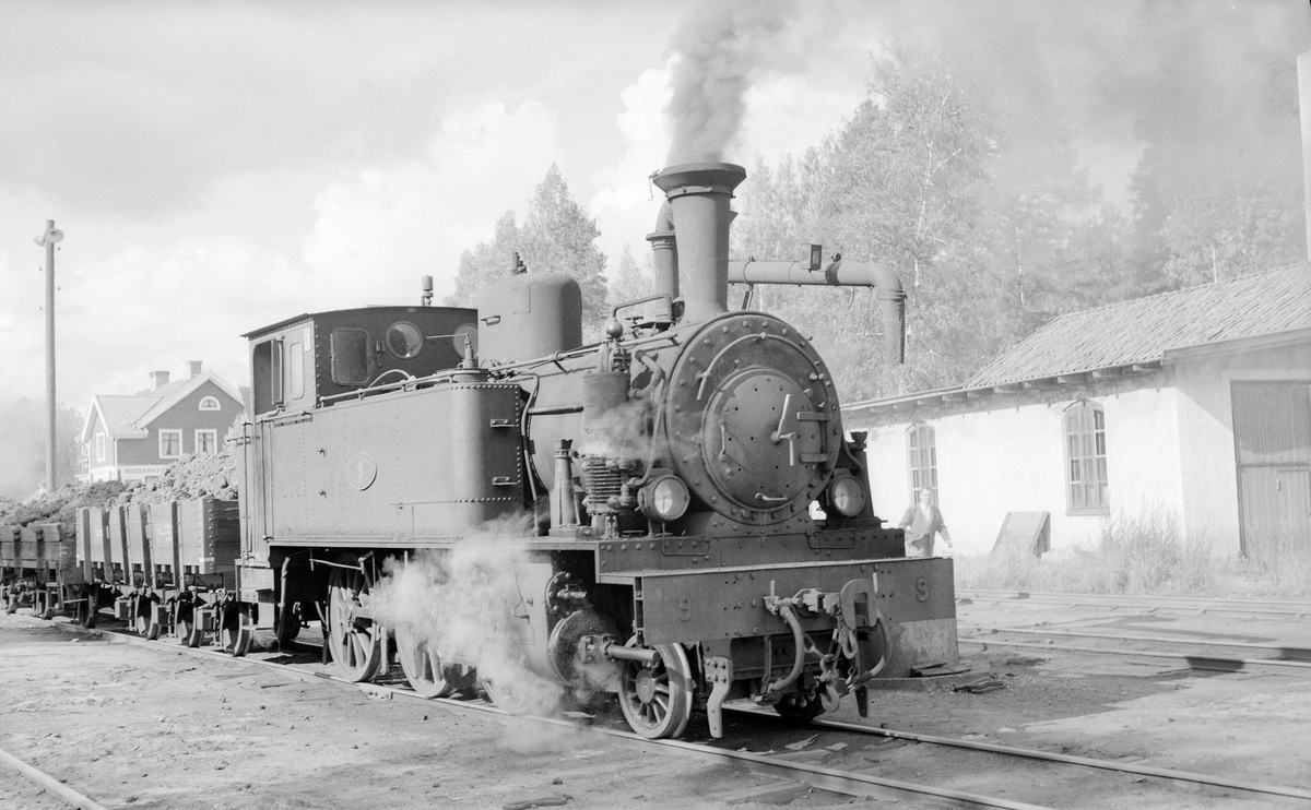 Köping - Uttersberg Järnväg, KUJ lok 9 med godståg.