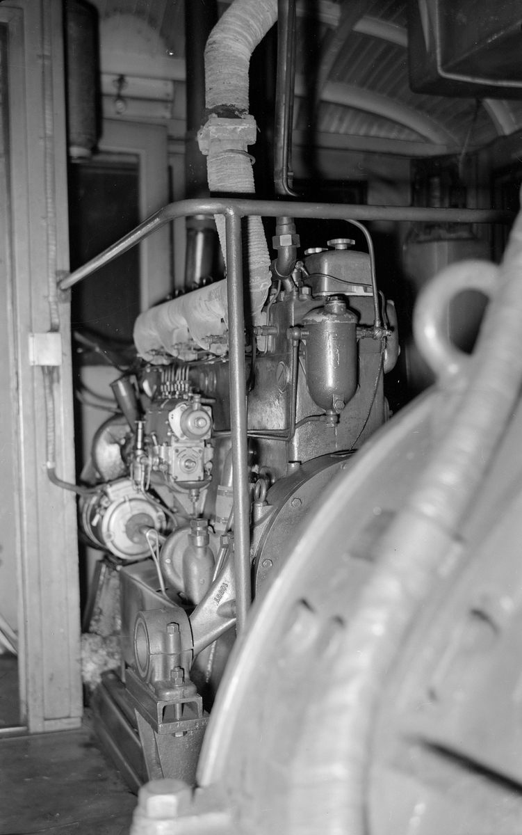 Titel: Dieselelektrisk motorvagn. Stockholm - Nynäs Järnväg, SNJ XC0 2. Maskinrum, dieselmotor.