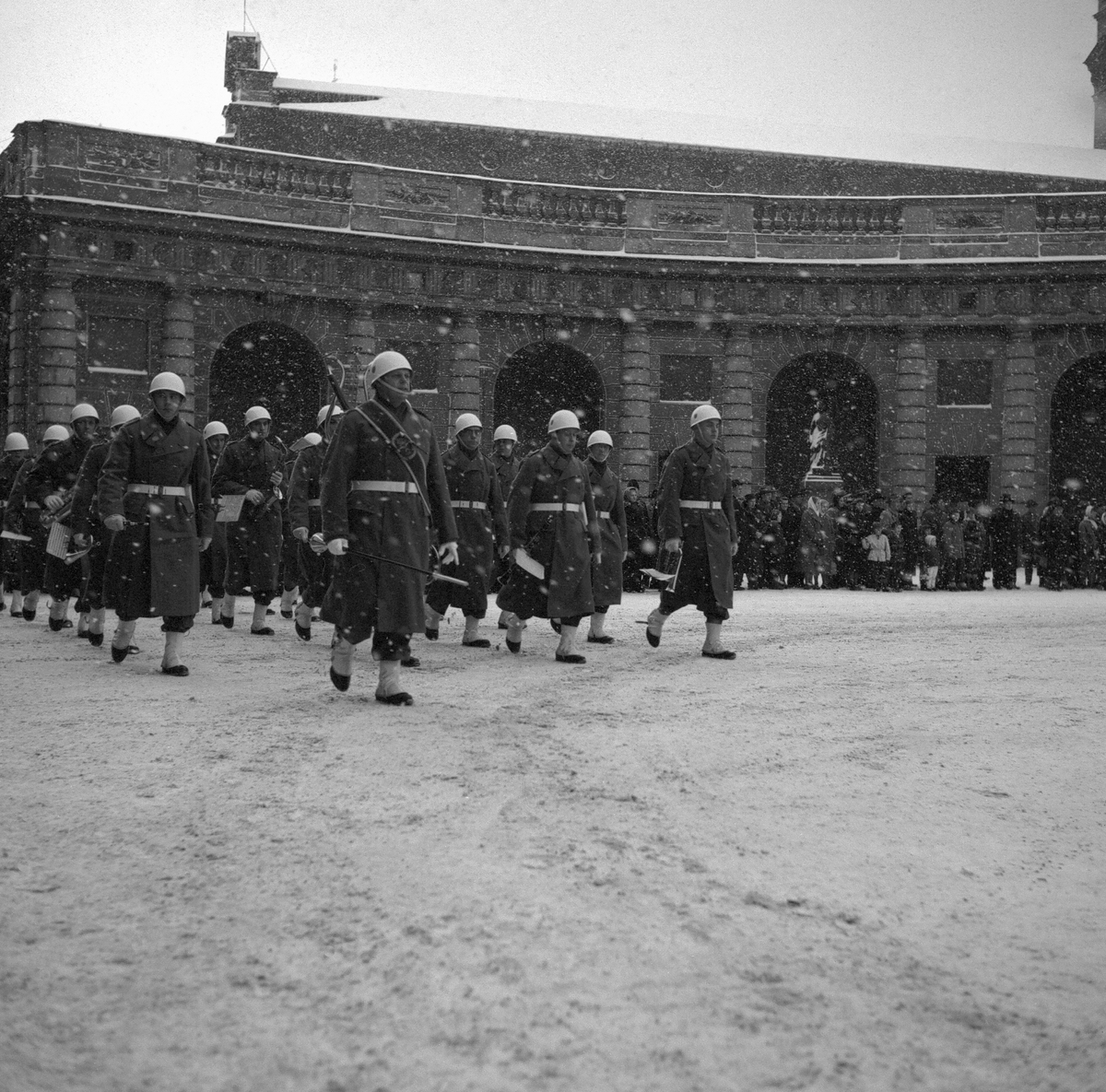 Titel: Statens Järnvägar SJ Driftvärn går högvakt vid Kungliga slottet.