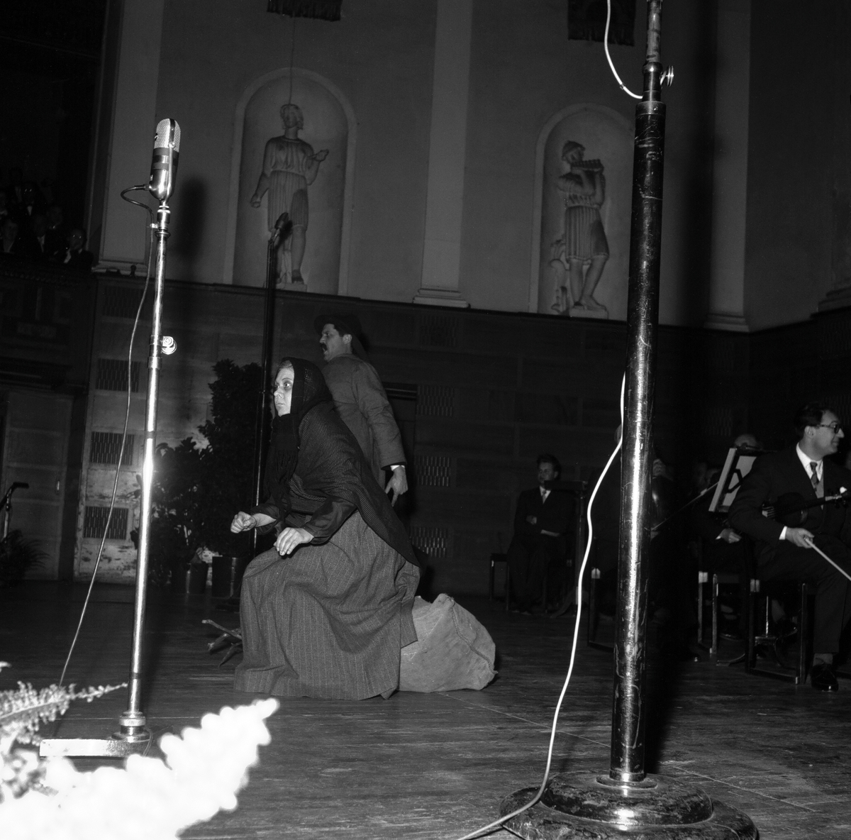 Jubileums avslutning i Konserthuset.. Skådespelare i föreställningen. En liten tablå.