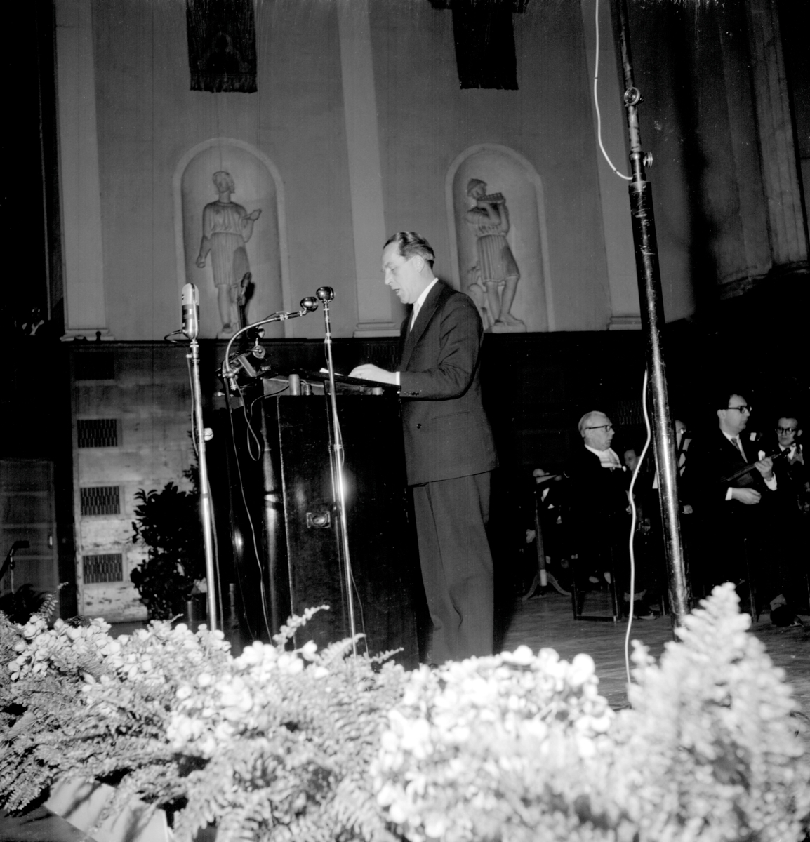 Jubileums avslutning i Konserthuset.. Statens Järnvägar SJ 1856-1956, 100-årsjubileum.