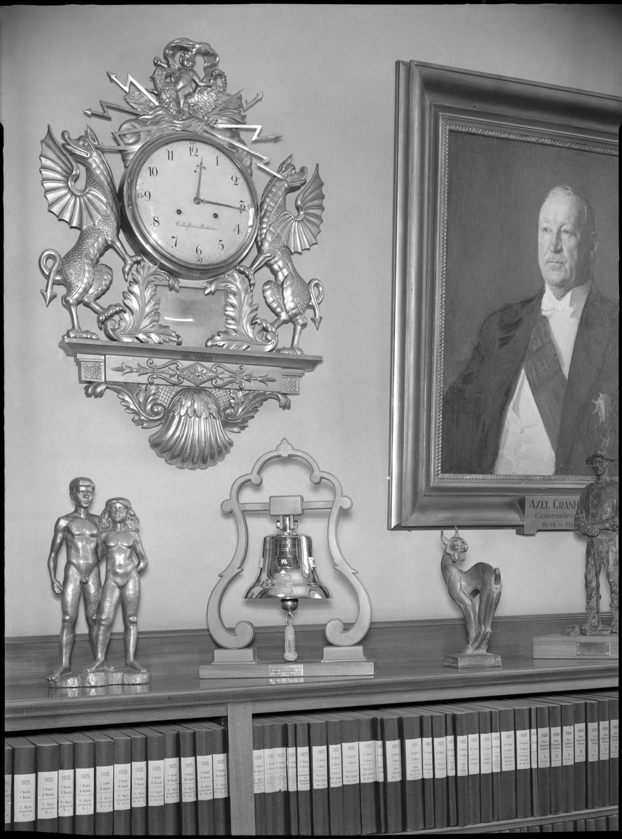 Jubileumsgåvor från Stora Kopparbergs AB, ungdomarna, Jungnerbolagets pendyl, SJ Förening lodjuret, NSB rallaren, SAL skeppsklockan.