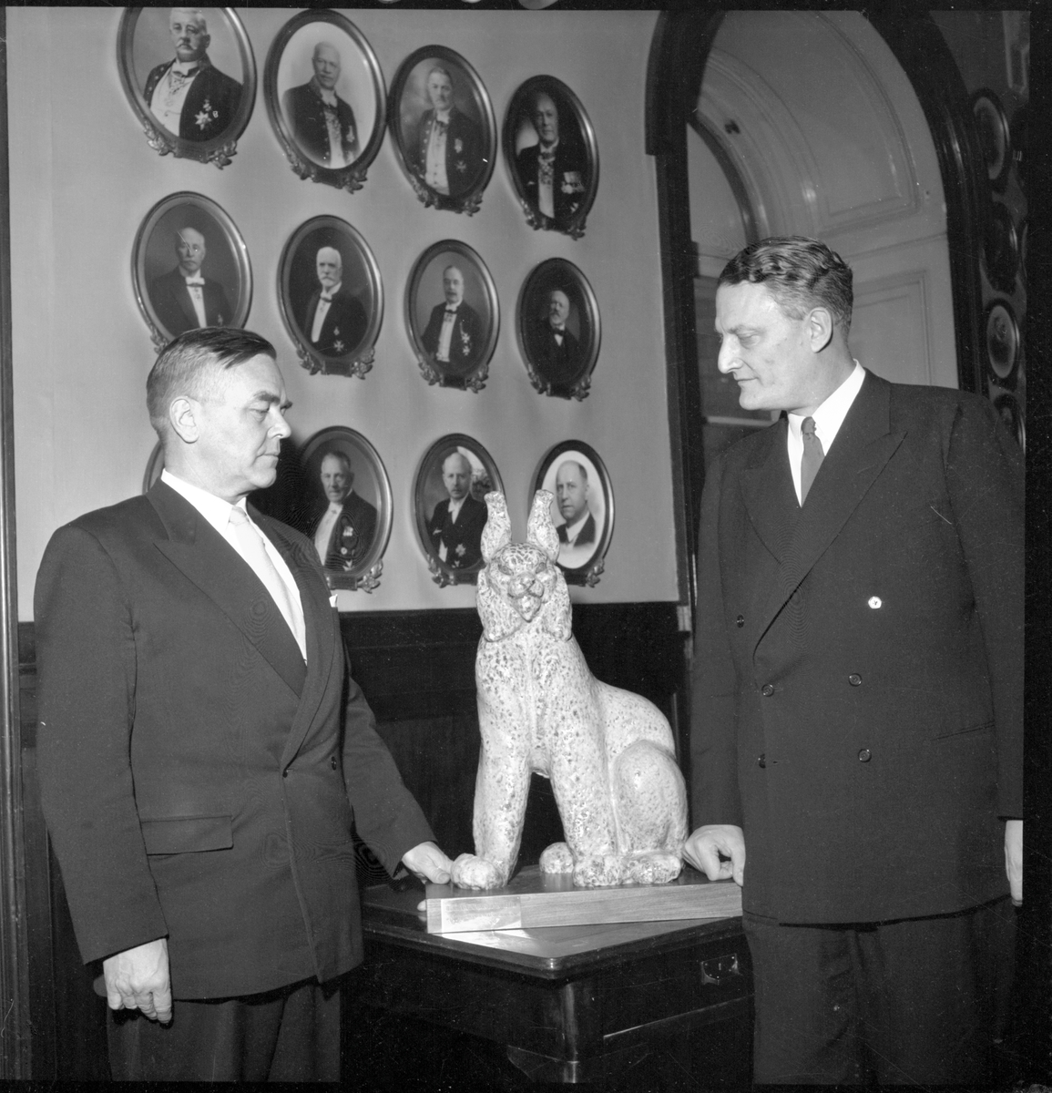 Finske general direktör Erki Aalto, överlämnar minnesgåva, lodjursbyst.