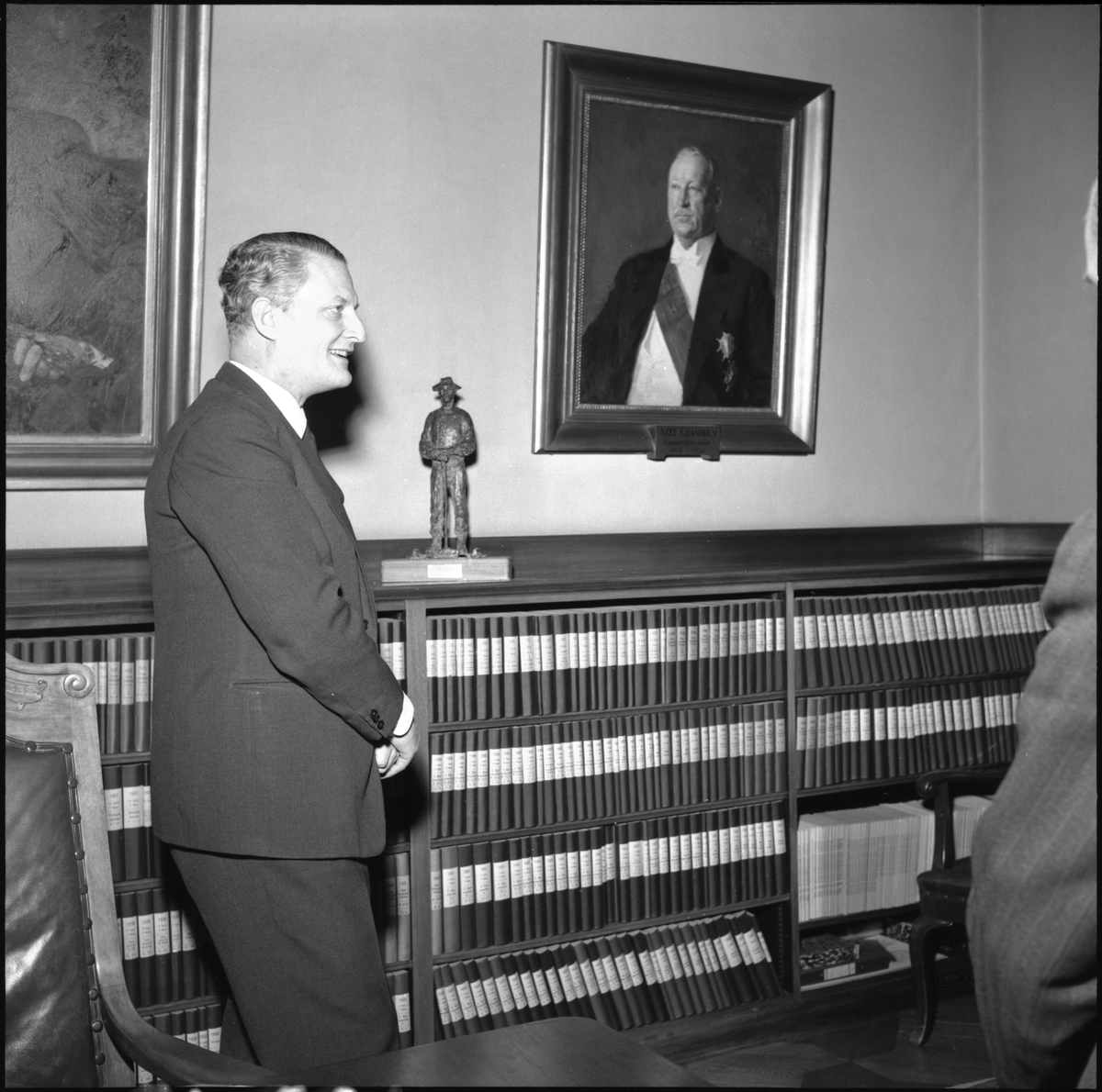 Statens Järnvägar SJ Generaldirektör Erik Upmark. vid överlämnandet av gåvan från Norske stadsbanor, NSB.