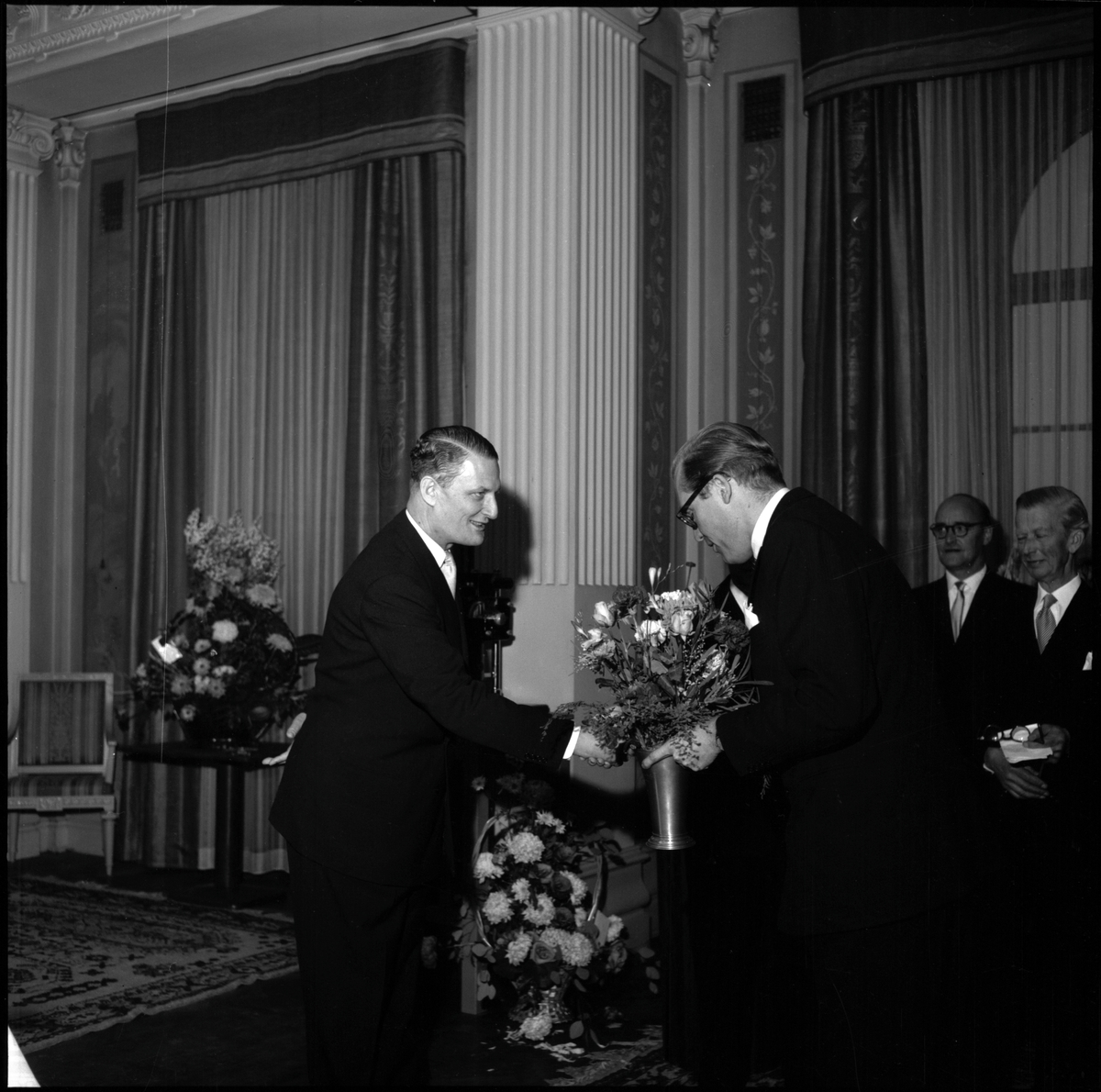 Titel: Generaldirektör Erik Upmark tar emot gåvor från Sydkraft, VEGETE-bolagen, SAL, Sv. Turisthot Riksförbund.