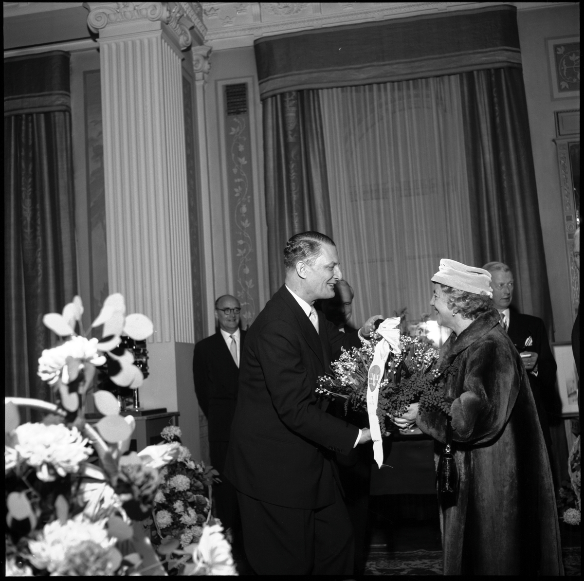 Titel: Generaldirektör Erik Upmark tar emot gåvor från Sydkraft, VEGETE-bolagen, SAL, Sv. Turisthot Riksförbund.