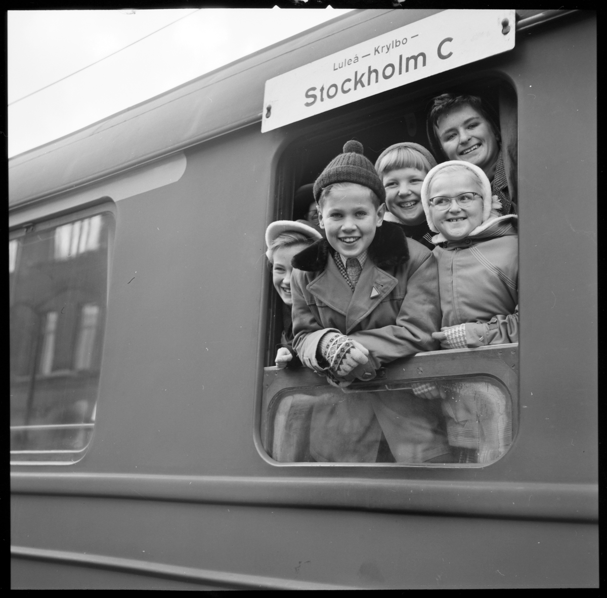 Skolungdomar från Holmön anländer till Stockholm C, efter besöket på Järnvägsmuseét.