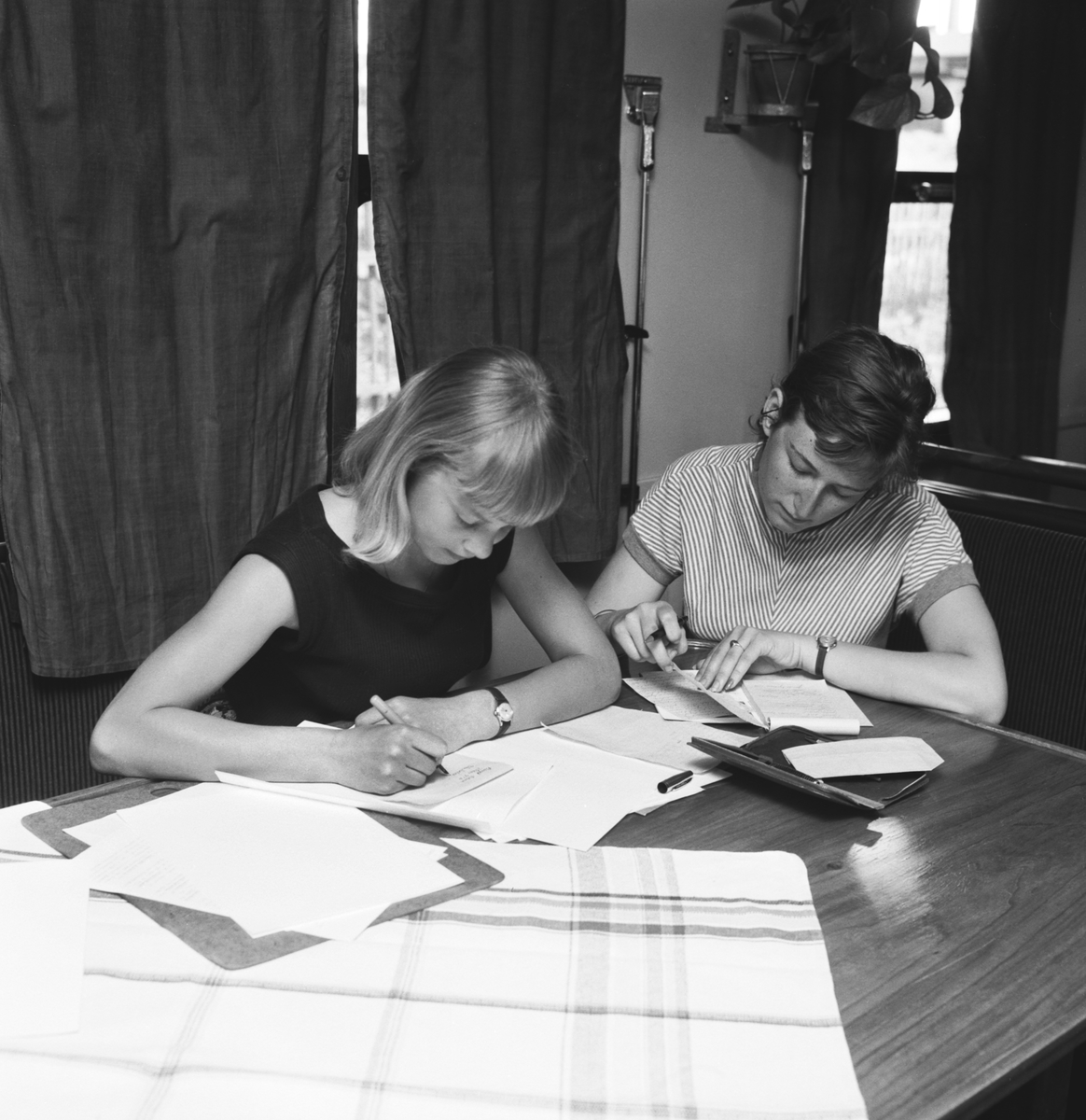 Titel: Statens Järnvägar, SJ Tåghem. Skolundervisning i sällskapsvagnen. (Blackebergs Lärov. tåghem)